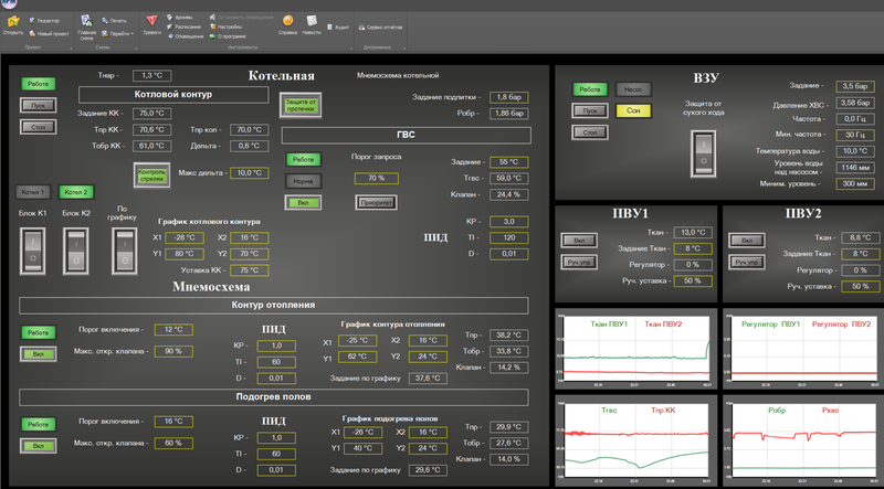 Так же и в котельной куча интерсных алгоритмов по контролю за переворотом стрелки, по балансу нагрузок в пике разбора ГВС, запросы повышения температур и пр. вплоть до обработки статистики для защиты от протечек теплоносителя.